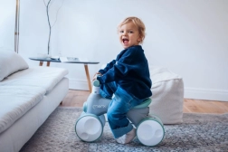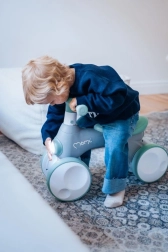 Das MoMi TOBIS Rutschfahrzeug ist die erste Fahrt Ihres Kindes! Es unterstützt eine gesunde Entwicklung und sorgt für Spaß – es schult das Gleichgewicht und fördert die Motorik. Außerdem bietet es tolle Extras: eine Hupe, ein Farbwechsel-Frontlicht und etwas, das Kinder lieben – Seifenblasen!