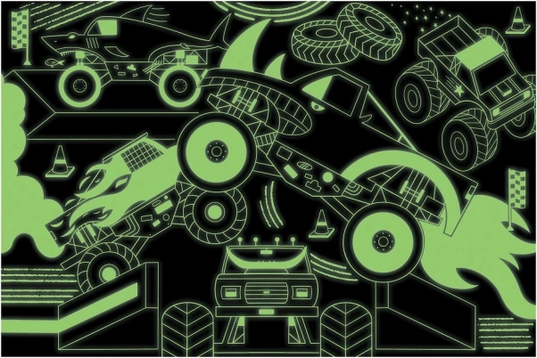 Puzzeln Sie eine dynamische und aufregende Szene mit Monstertrucks, die im Dunkeln erstrahlen, sobald das Licht ausgeht! Dieses Puzzle enthält 100 präzise geschnittene Teile und ist aus recyceltem und nachhaltig gewonnenem Material gefertigt. Eine spezielle matte Oberfläche stellt eine originalgetreue Wiedergabe aller Details und Farben sicher.