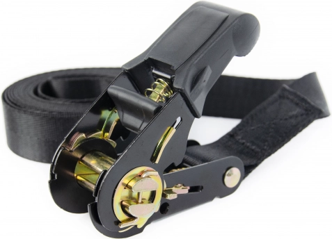 Die Ratschengurte umschließen den Stamm und halten sicher. Die Griffe einfach einfädeln und festziehen – in wenigen Minuten erledigt.