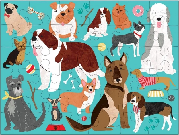 Entdecken Sie die Welt der Hunde mit einem Puzzle, das Kinder nicht nur unterhält, sondern auch bildet. Das Puzzle enthält Bilder von Möpsen, Dackeln, Bernhardinern und anderen niedlichen Hundekumpeln. Der Beutel besteht aus 100% Baumwolle mit Kordelzug, was ihn zu einem idealen Begleiter für Reisen macht. Die Bilder sind das Werk der renommierten Künstlerin Liz Forester, was Qualität und Ästhetik garantiert.
