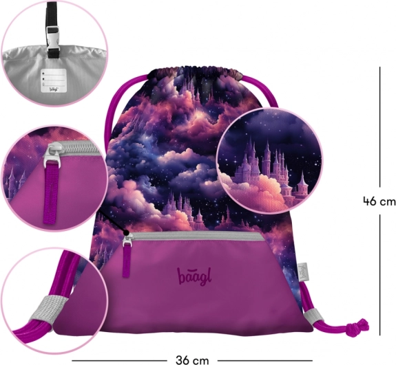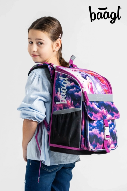 Schultasche, Federmäppchen und Beutel mit harmonierendem Motiv: Mäppchen mit hochwertigem YKK-Reißverschluss und Beutel mit Reißverschlusstasche sowie Karabiner zum Befestigen.