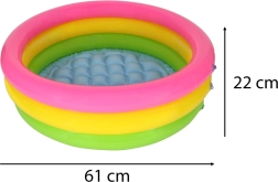 Machen Sie Ihren Kindern eine Freude mit einem Planschbecken, das wie geschaffen für heiße Tage ist. Kompakte Maße von 61 × 22 cm, drei separat aufblasbare Ringe in Regenbogenfarben und ein aufblasbarer Boden für mehr Komfort machen dieses Modell zur idealen Wahl für die Kleinsten.