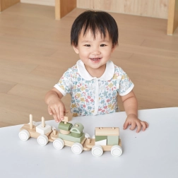 Der Zug ist aus hochwertigem Holz gefertigt und mit unbedenklichen Farben bemalt, was Sicherheit und Umweltfreundlichkeit gewährleistet.