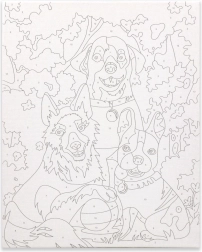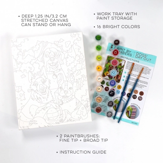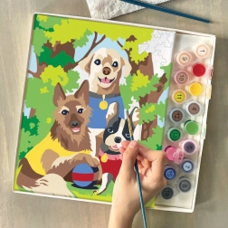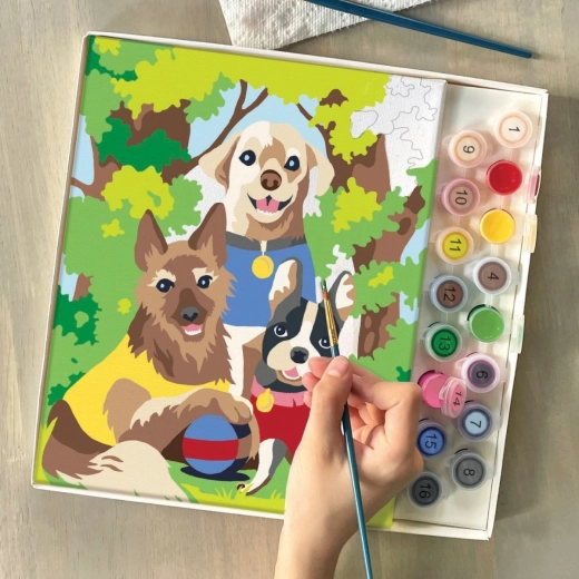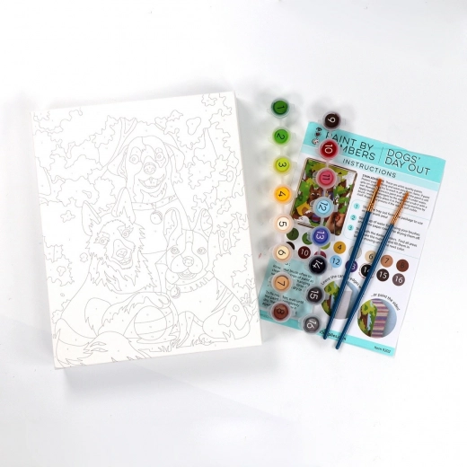 Dieses Malen-nach-Zahlen-Set hilft Ihnen Schritt für Schritt, eine farbenfrohe Szene mit drei Hunden beim Spaziergang zu gestalten. Die nummerierten Flächen auf der Leinwand entsprechen den Nummern auf den Farbtöpfchen, sodass Sie genau wissen, welcher Farbton wohin gehört. Malen ist entspannend, macht Spaß und eignet sich für Anfänger wie auch für Kinder.