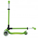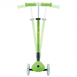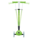 Der Scooter GLOBBER Primo Foldable Plus Lights überzeugt durch Stabilität, Sicherheit und Spaß. Zwei große 120-mm-Vorderräder mit LEDs auf Dynamo-Basis fallen sofort ins Auge und verbessern die Sichtbarkeit. Das niedrige, breite Deck mit rutschfester Oberfläche unterstützt einen sicheren Stand und eine einfache Kontrolle für Einsteiger.
