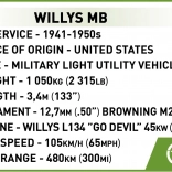 Jeep Willys MB ist ein legendäres Geländefahrzeug, das während des Zweiten Weltkriegs eine Schlüsselrolle spielte. Dieses Modell ist im Maßstab 1:35 und besteht aus 132 Elementen, einschließlich einer Figur eines amerikanischen Soldaten und Zubehör.