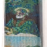 Entfernen Sie nach und nach die Schutzfolie, geben Sie die gewählte Farbe der Steinchen in das Schälchen, nehmen Sie Wachs in die Stiftspitze auf und übertragen Sie die Steinchen auf die markierten Stellen. Nach Abschluss geben Sie die Farbe zurück in den Beutel und fahren mit der nächsten fort.