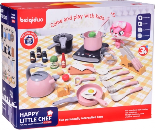 Kinder genießen das Spiel mit realistischen Kochgeräuschen, die das Spielerlebnis intensivieren und echte Küchenaktivitäten nachahmen.