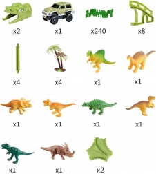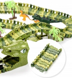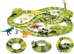 Erschaffe für Kinder eine Welt prähistorischer Abenteuer. Das Set enthält alles für langes, einfallsreiches Spielen: eine modulare grüne Strecke, 8 Dinosaurier (darunter 2 große), 2 Tunnel in Form eines Dinosaurierkopfes, Brücken, Bäumchen und ein elektrisches Auto mit AA-Batterie. Die Teile werden einfach zusammengeklickt und ergeben einen Rundkurs, auf dem das Auto selbst fährt.