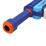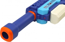 Die wiederaufladbare Wasserpistole M416! Dieses futuristische Gewehr mit beeindruckendem Design in Blau- und Weißtönen mit orangefarbenen Akzenten ist der perfekte Begleiter für sommerliche Abenteuer für Kinder und Erwachsene.