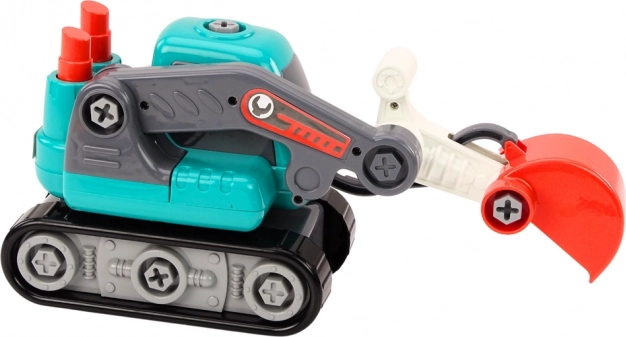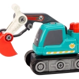Dieser cartoonhafte Kettenbagger in türkis begeistert jedes Kind, das Baustellen und Technik liebt. Mit den Schrauben und den beiliegenden Werkzeugen können Kinder das Fahrzeug selbst auseinander- und wieder zusammenbauen und so Geduld, logisches Denken und Geschicklichkeit entwickeln.