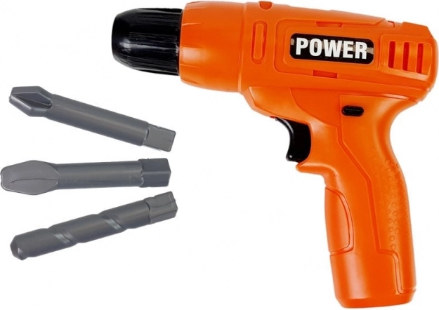Die leichte Kunststoff-Bohrmaschine mit auswechselbaren Bohrern liegt gut in kleinen Händen und unterstützt das Üben von Schrauben und Montieren. Ideal für Rollenspiele kleiner Handwerker.
