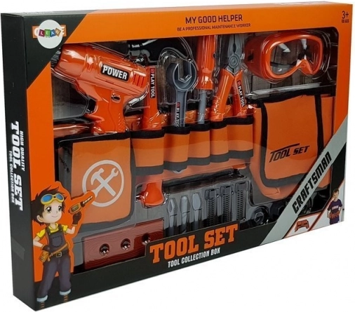 Der Gürtel mit mehreren Fächern hält das Werkzeug stets griffbereit, und der bequeme Schnallenverschluss sorgt für Stabilität beim Spielen. Die Bohrmaschine ist auf kleine Hände abgestimmt; dank verschiedener Bohrer, Schrauben und „Holz“-Teile verstehen Kinder leicht die Prinzipien von Schrauben und Bauen.