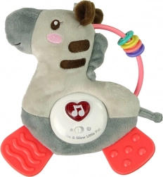 Das interaktive Zebra aus weichem Plüsch bringt Kindern Spaß und Beruhigung. Das leuchtende Herz startet Melodien und zieht die Aufmerksamkeit auf sich, während die weichen Beißringe an den Füßchen beim Zahnen Linderung verschaffen. Vier bunte Ringe auf dem Rücken dienen als Rassel und fördern Greifen und Manipulation.