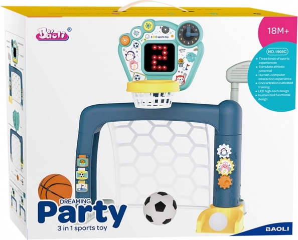 Dieses 3-in-1-Kindersport-Set bringt Spaß und Fähigkeitsentwicklung in einem Paket. Das Kind kann Tore schießen, Körbe werfen oder Golfbälle abschlagen, während es Bewegungsfähigkeiten, Hand-Auge-Koordination und räumliche Orientierung trainiert. Das interaktive Panel bietet Lichteffekte, Geräusche und Musik, die aktives Spiel und Konzentration fördern.