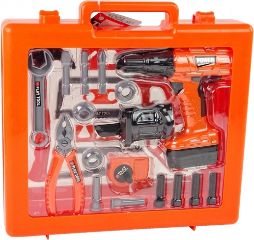 .Das Werkzeug ist hervorragend verarbeitet und komplett aus Kunststoff gefertigt. Dank des Koffers, in dem es verpackt ist, können Sie nach getaner Arbeit alles stets an seinen Platz legen und problemlos von Ort zu Ort transportieren. Im Inneren befinden sich 27 Heimwerkerteile.