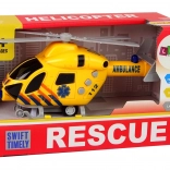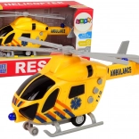 Dieser realistische Rettungshubschrauber in leuchtendem Gelb zieht Kinder in die Welt der Luftrettung. Durch Drücken der seitlichen Tasten werden authentische Geräusche und blinkende Lichter aktiviert, die die Atmosphäre der Rettungsaktion verstärken. Dank des Schwungradantriebs genügt es, den Hubschrauber nach hinten zu ziehen und loszulassen – er fährt ohne Antriebsbatterien nach vorne.