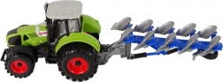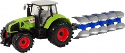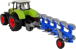 Zum Set gehört auch ein blau-silberner Pflug, der sich während der Fahrt des Traktors dreht und hebt. Wenn Sie den Pflug einsetzen möchten, heben Sie einfach das Rad an, und der Pflug wird abgesenkt, was eine effektive Simulation des Pflügens beim Spielen ermöglicht.