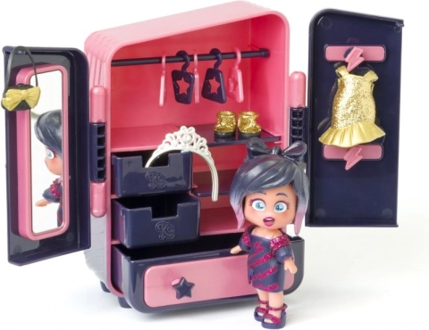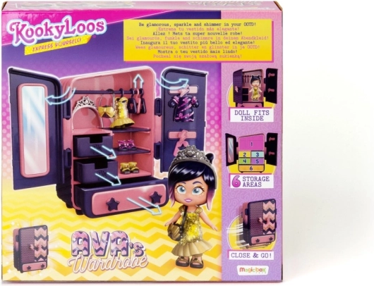Die Puppe Ava liebt glitzernde Outfits, die Teil des Sets sind. Das Spielset enthält auch einen praktischen Kleiderschrank, in dem Sie Outfits und Accessoires aufbewahren können. Dieses Set bietet viele Möglichkeiten für kreatives und fantasievolles Spiel.