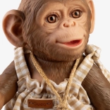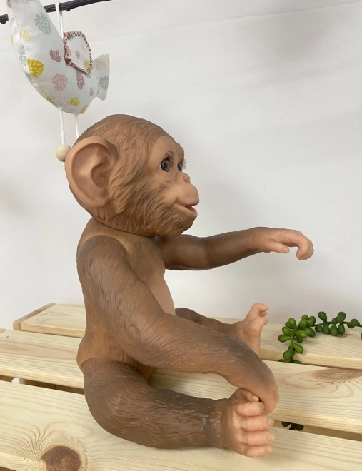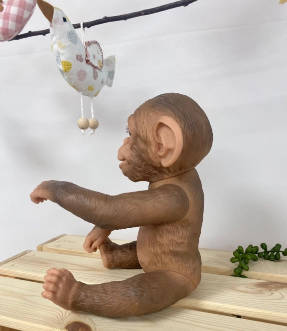 Dieses realistische Affenbaby besteht aus hochwertigem Vinyl, das die Falten und Details eines Tierjungen naturgetreu wiedergibt. Dank der Ganzvinyl-Ausführung ist es robust, pflegeleicht und kann vorsichtig gebadet werden. Arme und Beine sind gelenkig befestigt, sodass das Äffchen gut beweglich ist – es kann sitzen und an Händen oder Füßen hängen.
