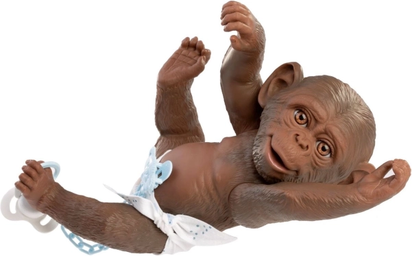 Genießen Sie das Spiel mit diesem entzückenden Affenbaby, das mit einem Ganzkörper-Vinyl ausgestattet ist, welches das Baden ermöglicht. Details wie Hautfalten und realistische Merkmale fesseln Sie völlig.