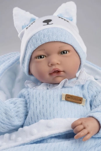 Diese realistische Klangbabypuppe hat einen weichen Stoffkörper für gemütliches Kuscheln und spielerische Momente. Sie ist mit Gelenken an Armen und Beinen ausgestattet, die eine Positionierung und das Sitzen ermöglichen und somit für abwechslungsreicheres Spiel sorgen. Die Puppe wird mit einem Schnuller als Zubehör geliefert und ist handgefertigt in Spanien, was ein Gefühl der Exklusivität verleiht.