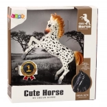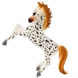Diese sorgfältig gefertigte Pferdefigur besticht durch realistische Details – weiße Farbe mit stilvollen Punkten, braune Mähne und Schweif sowie eine markante Pose, bei der das Pferd auf zwei Beinen steht. Sie vermittelt den Eindruck von Bewegung und verleiht jedem Kinderbauernhof oder Stall eine authentische Atmosphäre.