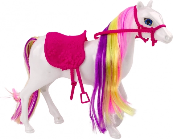 Entdecken Sie die Magie der Reiterwelt mit der weißen Pferdefigur, die durch detailreiche Gestaltung und Zubehör begeistert. Kinder können mit der beiliegenden Bürste kreative Frisuren stylen und das Spiel mit verstellbarem rosa Sattel und Zaumzeug ergänzen. Das Spielzeug fördert die Feinmotorik, Vorstellungskraft und Fürsorgefähigkeiten.