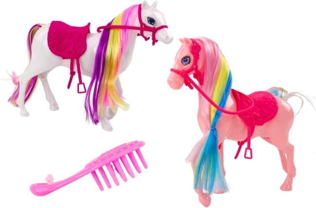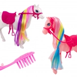 Pferdefigur mit bunter Mähne Sattel Bürste Weiß Rosa