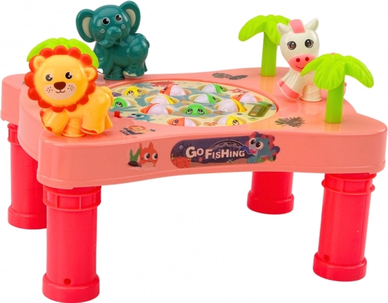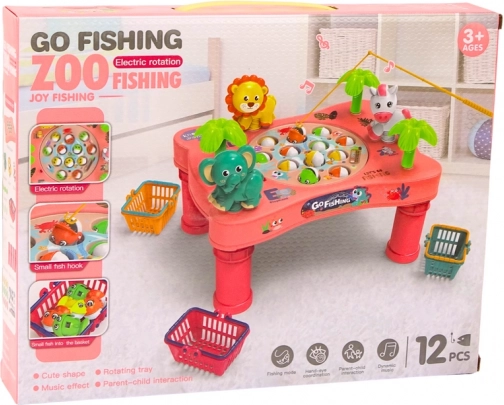 Das rosa Spieltischchen mit dem Thema „Go Fishing“ verwandelt das Kinderzimmer in ein kleines Aquarium. Die drehende Scheibe mit sich öffnenden Fischmäulern bietet eine dynamische Herausforderung, die Kinder zu präzisem Zielen und schnellen Reaktionen motiviert. Dank der leuchtenden Farben, fröhlichen Tierchen und Melodien begeistert das Spiel Klein und Groß.