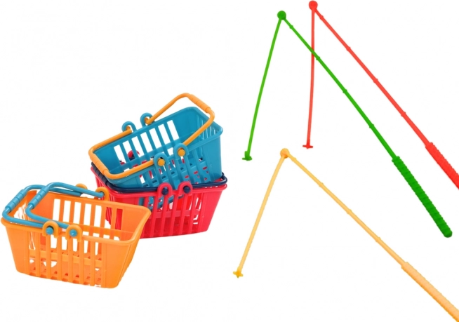 Im Set enthalten sind 3 Ruten und 3 Körbchen in verschiedenen Farben – ideal zum Wettspielen mit Freunden und Geschwistern.