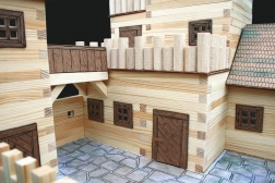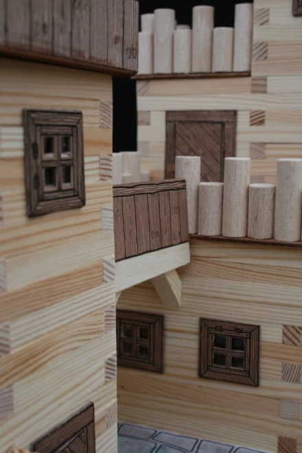 Holzleisten 9×9 mm und Papier-Zubehör (Fenster, Türen, Dächer) sorgen für ein originalgetreues Erscheinungsbild mittelalterlicher Architektur.
