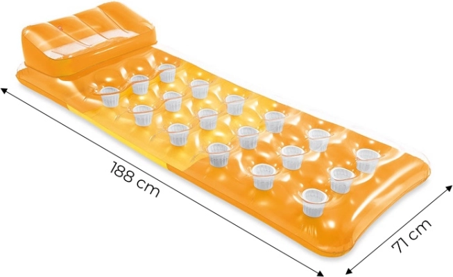Die aufblasbare Matratze verspricht ein großartiges Vergnügen in Ihrem Tagesablauf am Wasser oder im heimischen Pool. Dank der stabilen Konstruktion und der Form bietet sie zusätzlichen Komfort für entspannte Sonnenstunden.