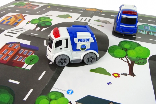 Spielzeugset mit Verkehrsmotiven ideal für Kinder, die die grundlegenden Straßenverkehrsregeln lernen. Es enthält Polizei- und Krankenwagen, die leicht von kleinen Kinderhänden zu greifen sind.