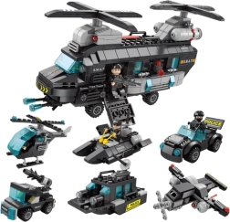 Mit dem Set können bis zu 19 verschiedene Kombinationen von Fahrzeugen der Spezialeinheiten gebaut werden. Kinder genießen so unbegrenzte Kreativität und stundenlangen Spielspaß. Wir können Spezialdienst-Großhubschrauber konstruieren – multifunktional, ideal für Rettungsaufgaben und Spezialoperationen. Kampfflugzeug – schnell und wendig, ausgestattet mit modernster Einsatztechnik.