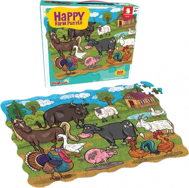 Puzzle Glücklicher Bauernhof bietet Kindern kreativen und klugen Spaß, wenn sie 208 Teile mit Motiven des Bauernhofes und seiner Bewohner zusammenfügen.