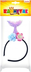 Verwandeln Sie sich im Handumdrehen in eine zauberhafte Meerjungfrau. Dieses violette Stirnband ist mit zarten Blüten und einem markanten Fischschwanz verziert, der jedem Kostüm eine märchenhafte Note verleiht.