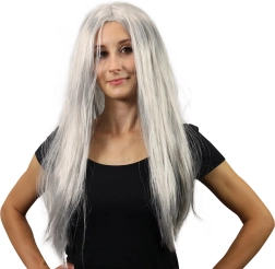 Verwandle dich im Handumdrehen in eine geheimnisvolle Hexe. Diese lange graue Perücke verleiht deinem Kostüm einen authentischen Look – perfekt für Halloween, Mottopartys oder Cosplay. Dank der synthetischen Fasern wirkt sie natürlich und behält gut ihre Form.