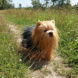 Langes, weiches Fell, glänzende Augen und eine naturgetreue Farbgebung sorgen für das beeindruckend realistische Aussehen des Yorkies.