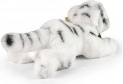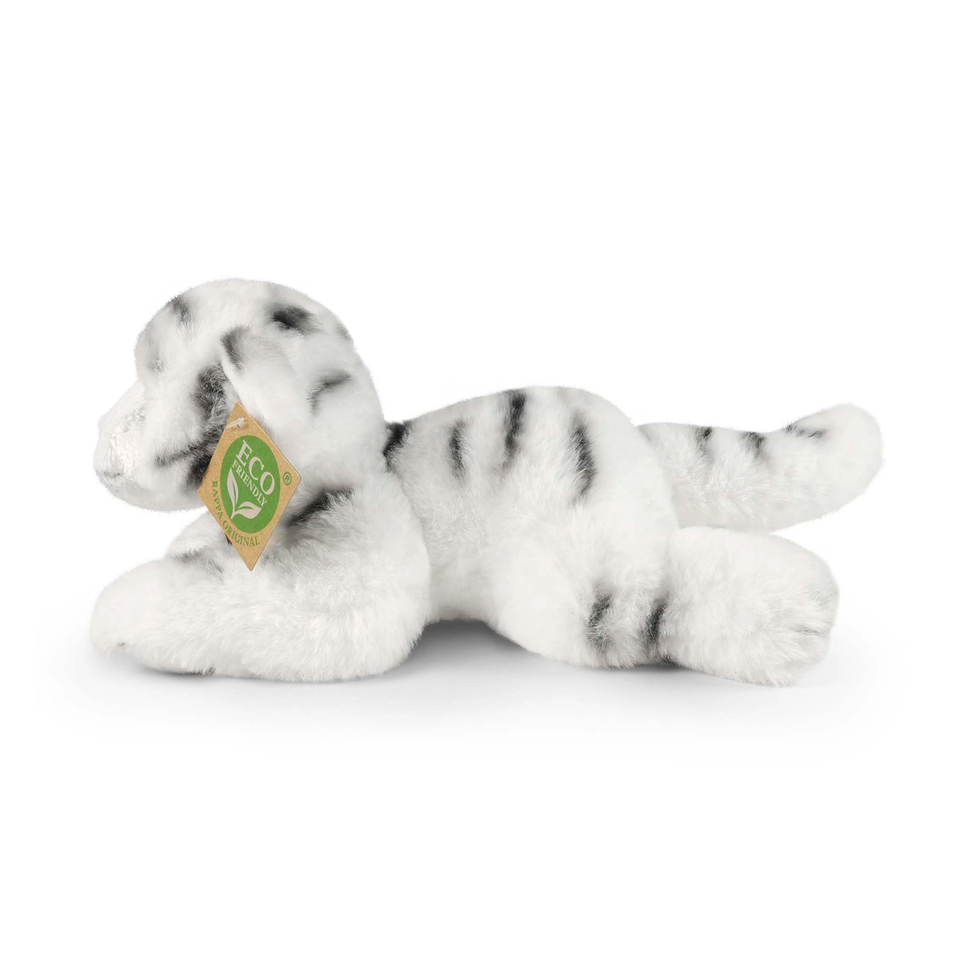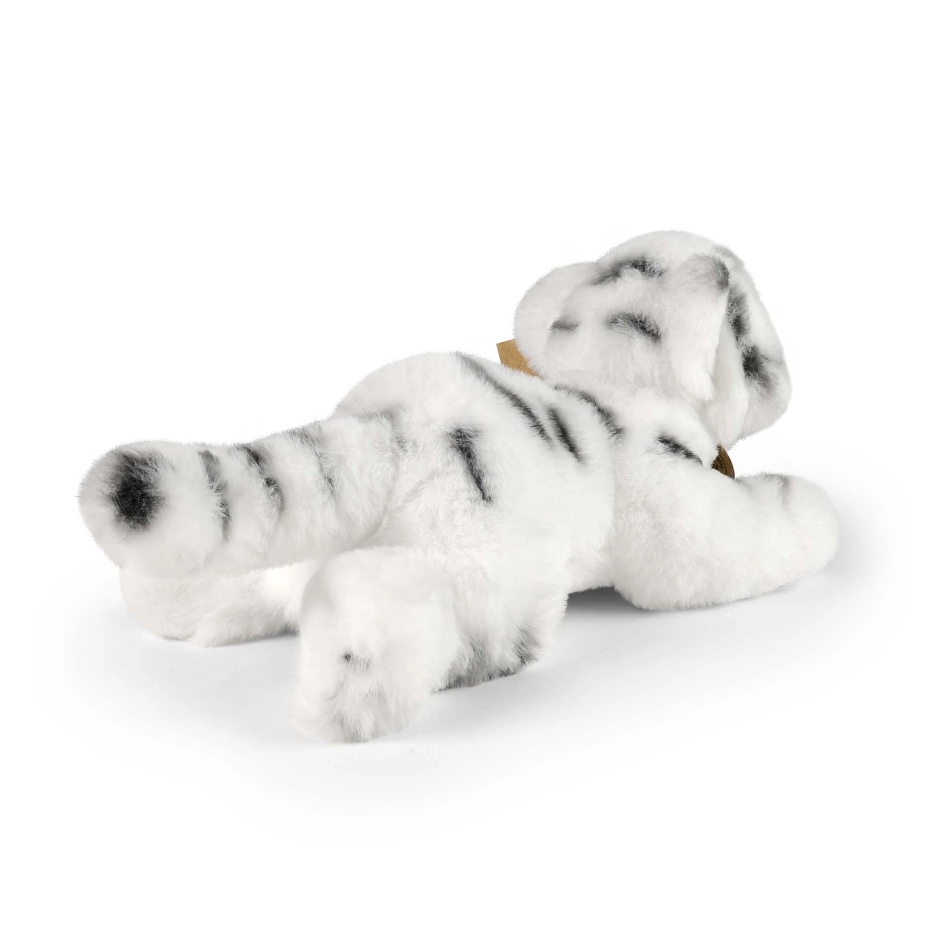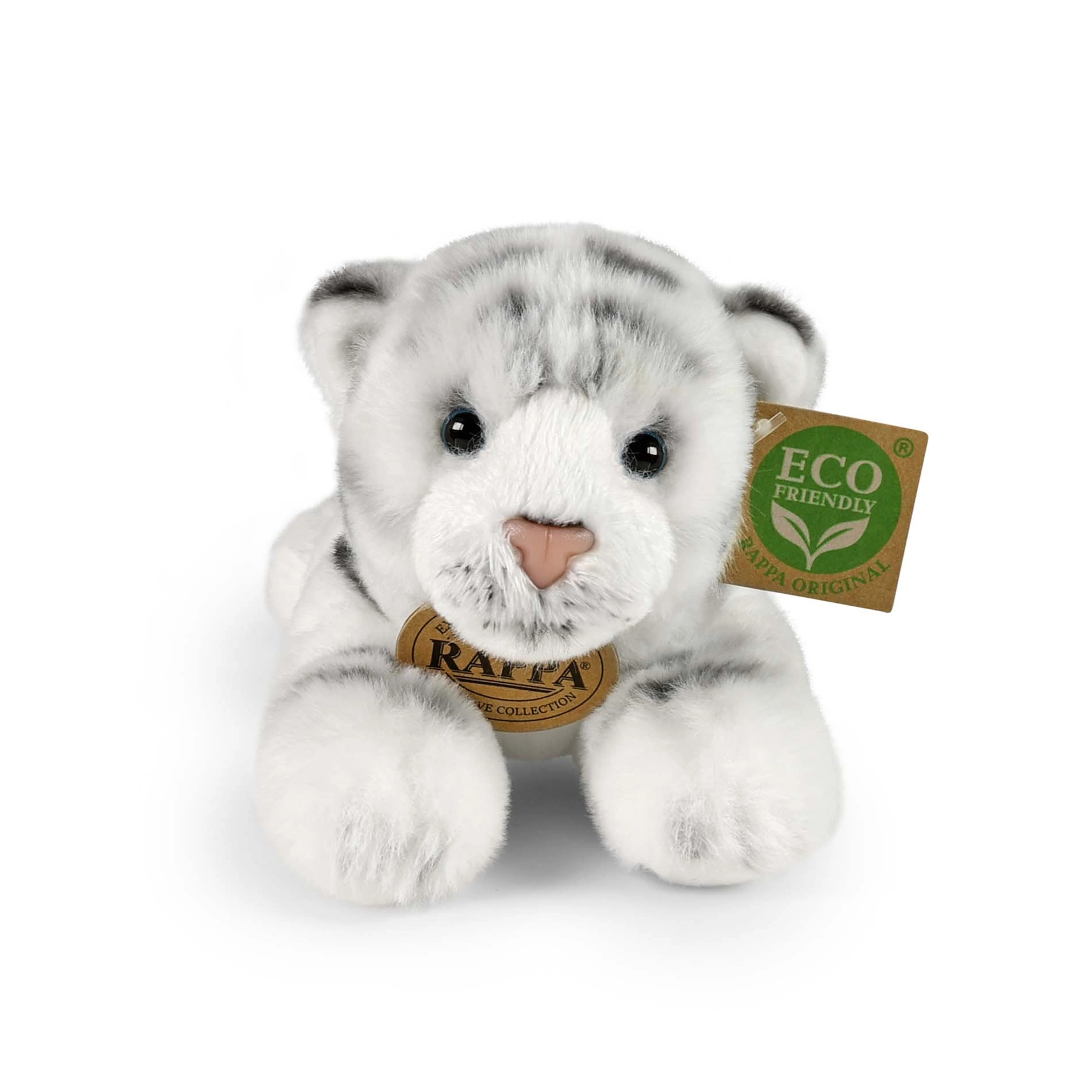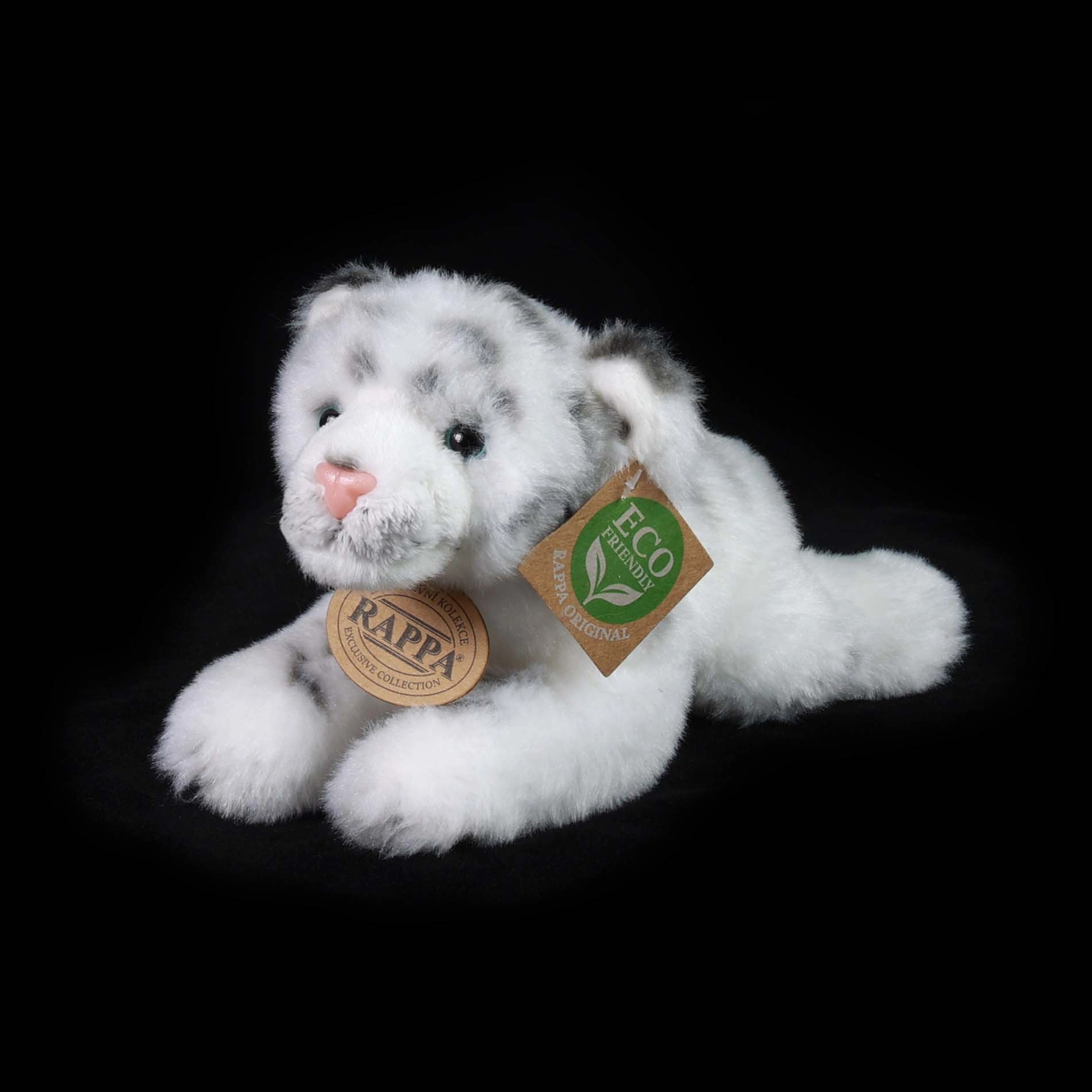 Dieser liegende weiße Tiger der Marke RAPPA ist auf maximale Weichheit und Sicherheit ausgelegt. Durch die Handarbeit wirkt er sehr realistisch und lädt zum Kuscheln und zu kreativem Spiel ein. Die Füllung besteht aus recycelten PET-Flaschen, ist sicher und haptisch nicht von klassischer Füllung zu unterscheiden – schonend für Natur und Kinder.