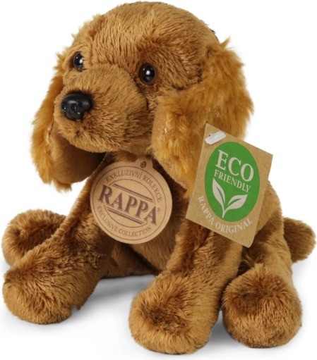 Dieser sitzende Plüschhund mit einer Höhe von 14 cm überzeugt durch sein realistisches Aussehen, seine kuschelweiche Oberfläche und die hochwertige Verarbeitung. Er ist Teil der exklusiven Plüschspielzeug-Kollektion RAPPA und stellt dank der umweltfreundlichen Füllung aus recycelten PET-Flaschen eine verantwortungsbewusste Wahl für Eltern und Schenkende dar.