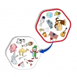 Die Spieler wechseln sich ab, um so schnell wie möglich eine Übereinstimmung zwischen zwei Spielkarten zu finden und zu benennen. Das Spiel enthält 72 Karten und 64 Symbole, die endlose Möglichkeiten und unendlichen Spaß gewährleisten.