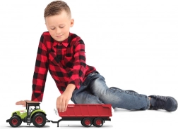 Ein moderner Traktor mit rotem Anhänger aus der Kollektion Meine kleine Farm erfreut jeden kleinen Landwirt. Er bietet Licht- und Geräuscheffekte, einen Schwungradantrieb für sanfte Fahrt und einen abnehmbaren Anhänger für noch mehr Spielmöglichkeiten. Batterien sind im Lieferumfang enthalten.