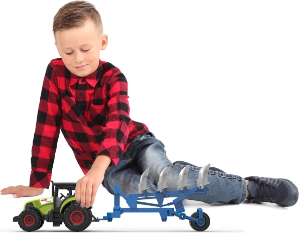 Für die Fahrt sorgt ein Freilaufantrieb, sodass der Traktor sich mit einem leichten Schubs leicht in Bewegung setzt. Die Gesamtlänge des Sets beträgt 37 cm, was Stabilität und eine bequeme Handhabung für kleine Kinderhände gewährleistet. Batterien sind im Lieferumfang enthalten, sodass Kinder direkt nach dem Auspacken losspielen können.