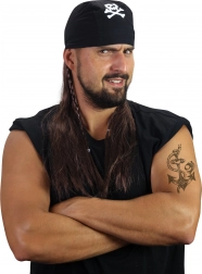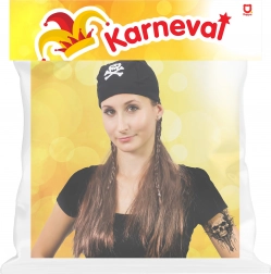 Schlüpfen Sie in nur wenigen Sekunden in die Rolle eines furchtlosen Piraten. Diese Piratenperücke mit Tuch besticht durch den markanten Piraten-Look mit Totenkopf und gekreuzten Knochen, der sofort ins Auge fällt. Ideal für Karneval, Halloween, Maskenball und Mottoabende.