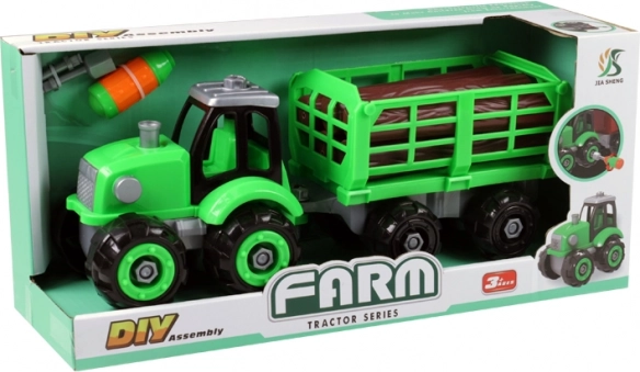 Entdecken Sie den grünen schraubbaren Traktor mit Holzanhänger, der Spaß mit Lernen verbindet. Dank des einfachen Schraubsystems können Kinder das Fahrzeug selbst zerlegen und wieder zusammensetzen, lernen den Umgang mit Werkzeug und trainieren Geduld sowie Koordination.