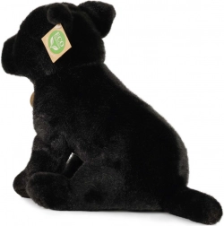 Dieser schwarze Plüschhund mit heller Brust ist wie geschaffen zum Kuscheln. Präzise Handarbeit und dichter, weicher Plüsch verleihen ihm ein lebensechtes Aussehen, das Kinder sofort lieben werden. Die Füllung aus recycelten PET-Flaschen ist 100 % sicher, getestet und haptisch nicht von herkömmlicher Füllung zu unterscheiden.