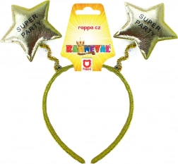 Karneval-Stirnband mit der Aufschrift SUPER PARTY ist ein stilvolles Accessoire für jede Feier, das dank seiner goldfarbenen Sterne Aufmerksamkeit erregt.