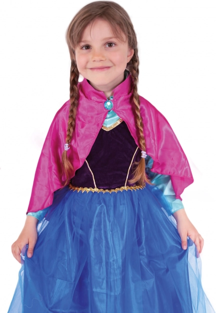 Dieses stilvolle Kostüm verwandelt jedes Mädchen in eine mutige Prinzessin, bereit für winterliche Abenteuer. Satte schwarz‑blaue Farben mit goldenen Details und ein rosa Satinumhang mit Zierschließe schaffen einen eindrucksvollen Look für Karneval, Geburtstagsfeiern und Verkleiden zu Hause.