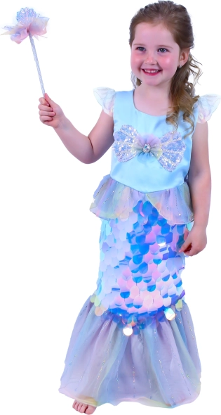 Verwandeln Sie Ihre kleine Prinzessin in eine zauberhafte Meerjungfrau mit diesem fesselnden Karnevalskostüm! Das Kostüm in leuchtendem Blau, passend für Mädchen im Alter von 4-6 Jahren (110-116 cm), sorgt für magische Momente.